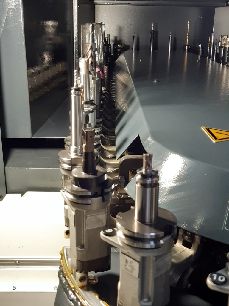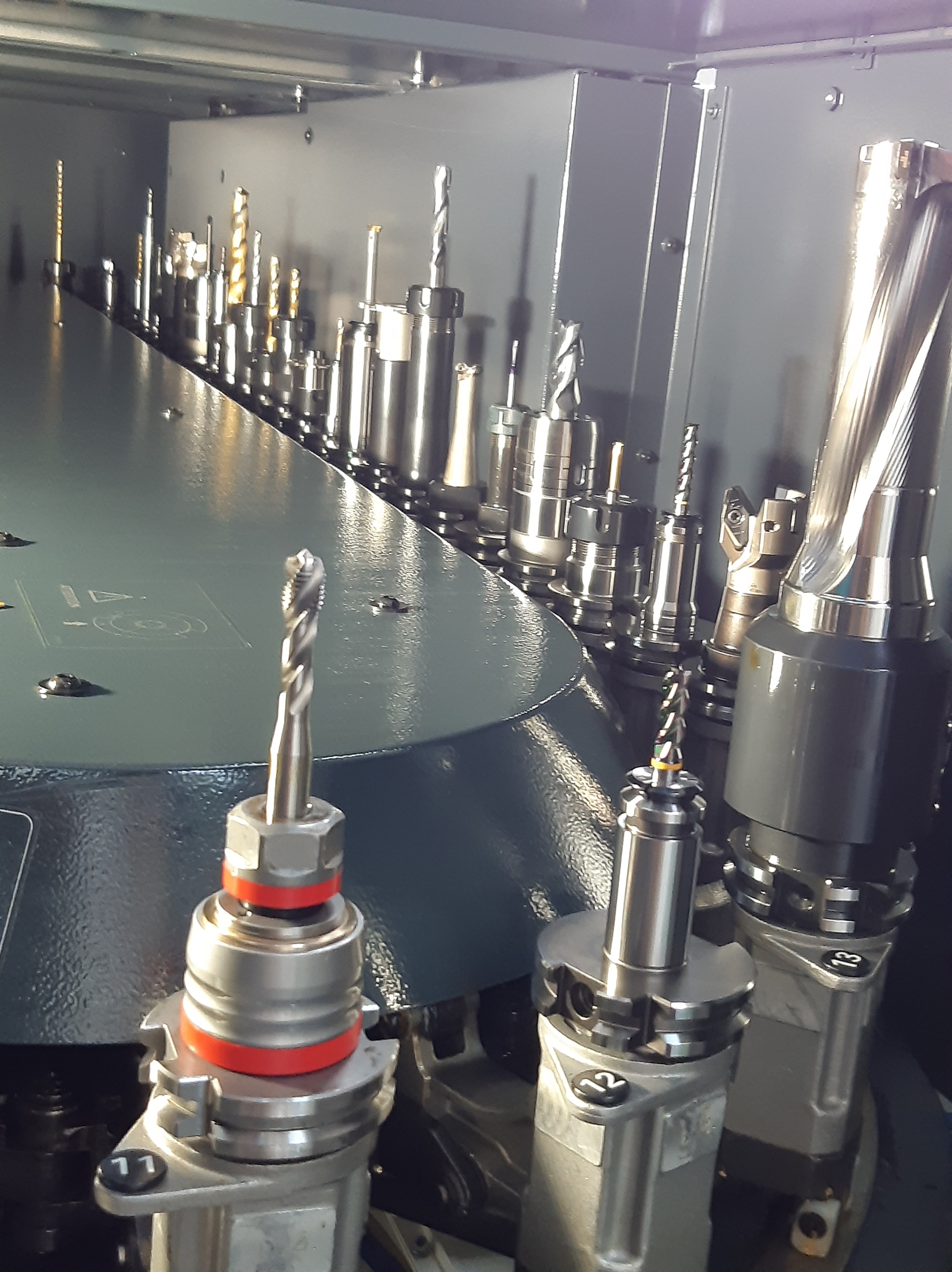 A fully loaded tool carousel with all high end tool holders and tools. To deliver precision, every element counts and nothing counts more than the tools and tool holders that are the business end of machining. Using a high end machine with low end tool holders and tools is the same as driving in a supercar powered by a punny corolla engine.