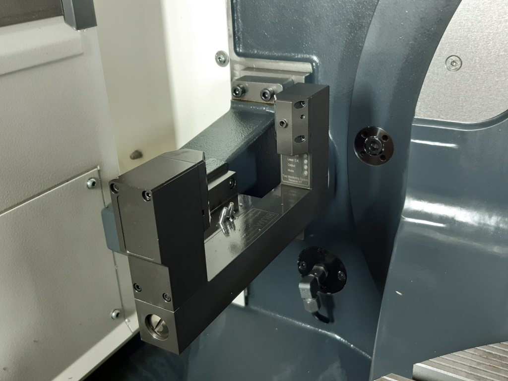 This is our in-machine laser tool presetter, this is capable of measuring the size and shape of cutting tools, giving unprecedented accuracy to the system.