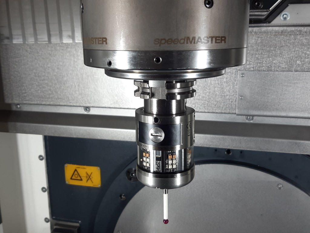 This is our in machine part probing tool. This tool probe has sub-micron accuracy. It is used to estimate and “walk the tolerances,” all within the machining process so that the machine does not need to stop. This guarantees that customers get consistently perfect parts.